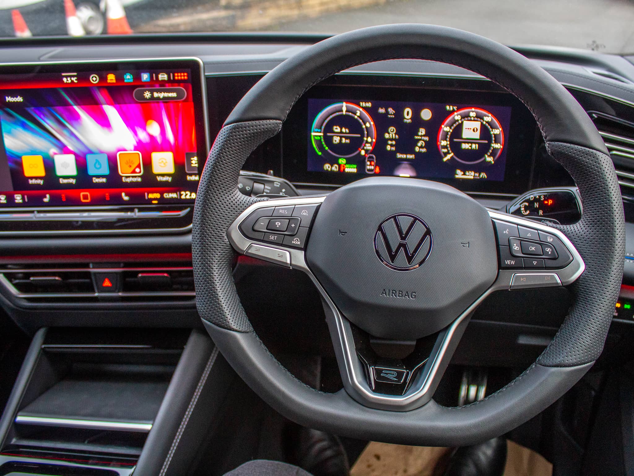 There is, of course, a giant touchscreen infotainment system, which is responsive and logically laid out and features VW’s very latest software and user interface, however, there are still plenty of old fashioned mechanical buttons to make sure the essential functions you need can be selected without taking your eyes off the road or navigating through a sea of menus. The rotary selector in the middle of the dash is a nice, tactile touch too! No sign of the touch sensitive non-switches that plagued ‘that’ particular Golf’s steering wheel a year or two back!